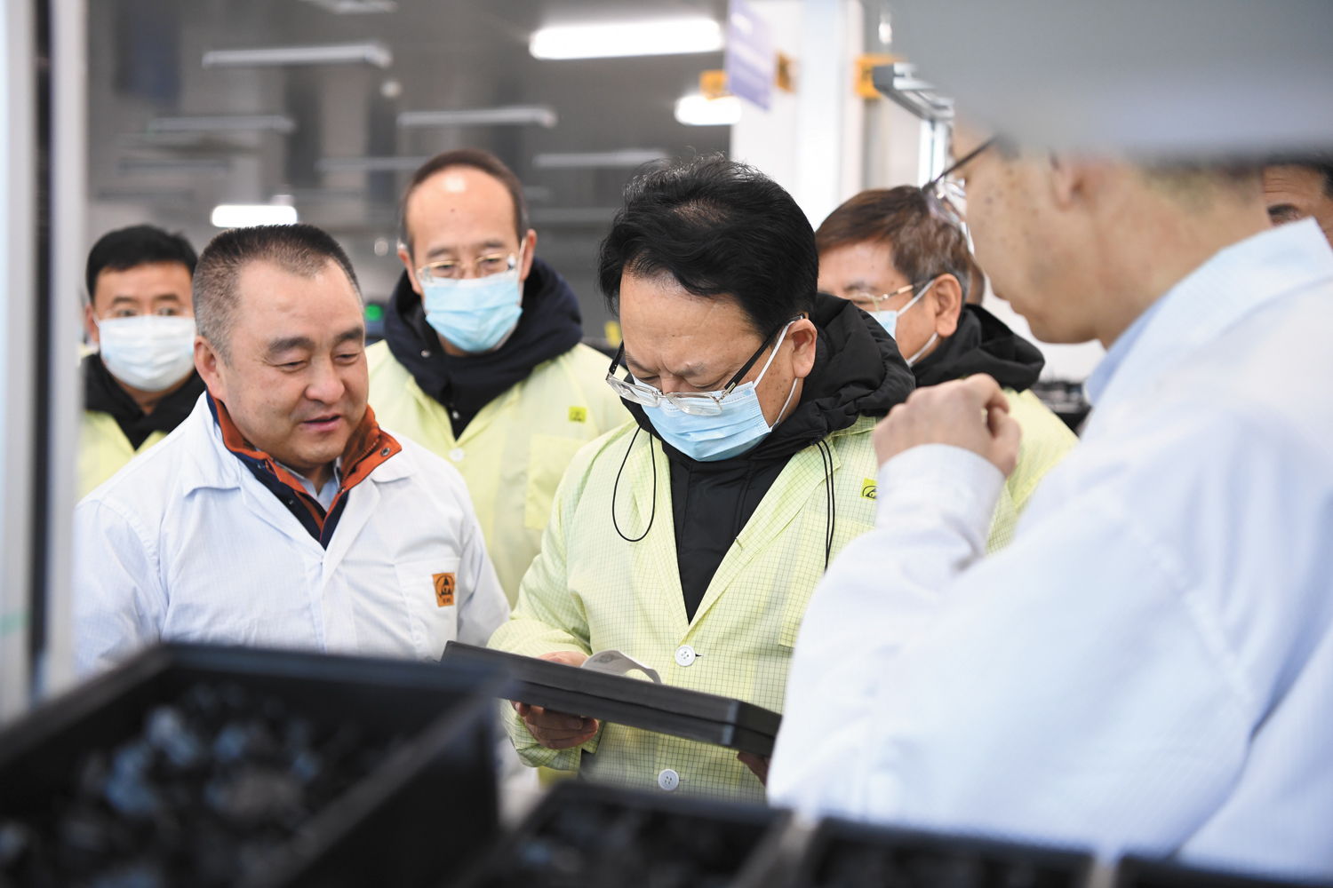 12月9日,吉林省委书记景俊海到中国兵器工业集团东北工业集团有限公司,就深入贯彻党的十九届五中全会精神和习近平总书记视察吉林重要讲话重要指示精神 香蕉影视,全面落实省委十一届八次全会精神,推动企业创新发展等情况进行调研,吉林省委常委,副省长吴靖平,吉林省委常委,省委秘书长胡家福,吉林省委常委,长春市委书记王凯一同调研。  图为景俊海等在东北工业集团生产现场调研