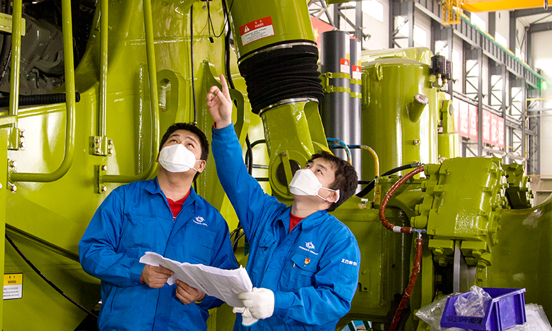 图为北重集团北方股份一线员工赶制生产进度。