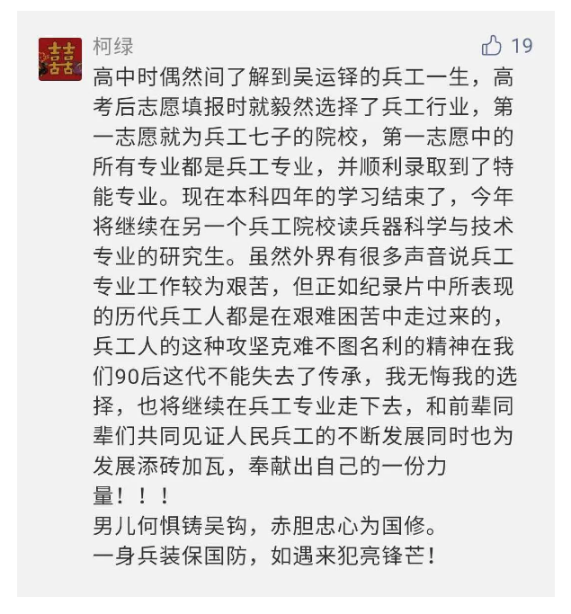 在中国共产党成立九十九周年之际 香蕉影视,由中国兵器工业集团有限公司组织摄制,反映人民兵工在党的领导下80余年光辉奋斗历程,广大兵工人弘扬“把一切献给党”人民兵工精神的三集纪录片《人民兵工》自7月1日-3日每晚20点在中央广播电视总台中文国际频道(CCTV-4)《国家记忆》首播以来,在兵器系统和观众中引发强烈反响,很多网友,观众纷纷留言表达了自己的观后感受。 观众在兵器工业集团官微的留言区直抒了观影感受,有的热泪盈眶,有的心潮起伏 香蕉影视在线,有的兴起赋诗,有的认为让心灵得到净化,思想得以提升,有的认为是最直观的国防教育教材....... 影片勾起了退休老同志无限怀念 香蕉影视高清. 兵工人的甜美记忆. 摄制期间官田中央兵工厂文化教育基地工作人员的难忘瞬间....... 相比老一辈,年a轻的兵工人也表达了传承红色基因,弘扬新时代“把一切献给党”的人民兵工精神的豪迈气概...... 香蕉影视免费观看. 其中也不乏在校的学生 免费电影,在感谢英模树立的榜样和丰碑的同时,也为自己的职业生涯定好坐标,做好规划,努力前行....... 作为新时代弘扬人民兵工精神的特色文化成果,纪录片的播出,凝聚起广大兵器干部职工团结奋斗新时代磅礴力量 香蕉在线,极大的增强了兵工人的自豪感,大家纷纷表达了作为军工央企一员 “此生无悔入军工”的使命担当....... 《人民兵工》共分为三集,分别是《摇篮》《锤炼》《前行》,全景式展示了我们党领导和创建的第一个军事工业部门——人民兵工80余年来从无到有,从小到大,从弱到强的光辉奋斗历程,生动讲述了广大兵工人听党话,跟党走,大力弘扬“把一切献给党”的人民兵工精神,自力更生,艰苦奋斗 香蕉影视,开拓进取,无私奉献的家国情怀和感人事迹,在人民兵工80余年筚路蓝缕的奋斗历程中,涌现出吴运铎,倪志福,祝榆生等一大批英模人物,在血与火的考验中凝练形成了“把一切献给党”的人民兵工精神,成为人民兵工奋斗不息的红色基因,(王珊)。 | ||
