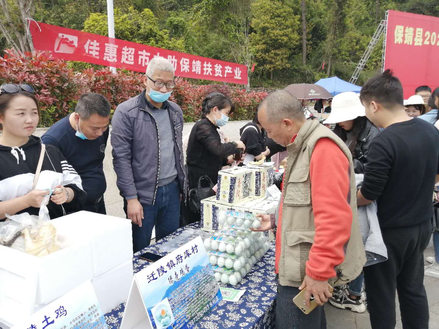 朱利庆带着村特色养殖府库绿壳土鸡蛋亮相当地市场