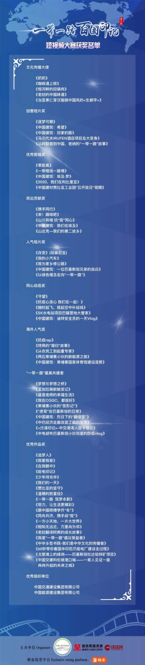 近日,由中国公共外交协会、国务院国资委香蕉影视高清和环球网联合主办的第二届“一带一路”百国印记短视频大赛获奖名单揭晓,中国兵器工业集团北方公司两部作品获奖,其中《一带橙线一路情》荣获“优秀剪辑奖”,《温穗的致富经》荣获“优秀作品奖”。 《一带橙线一路情》 《一带橙线一路情》讲述的巴基斯坦拉合尔橙线轨道交通项目是“一带一路”倡议下中巴经济走廊首个签约的基础设施项目,也是巴基斯坦第一条城市轨道交通项目,橙线项目建设和实施过程中,北方国际广泛运用中国标准,中国技术,中国装备 香蕉影视在线,高质量的设计和建设得到了巴方合作伙伴的高度赞誉,被拉合尔当地市民亲切称为“来自中国兄弟的一份厚礼”。 《温穗的致富经》 《温穗的致富经》聚焦随着缅甸莱比塘铜矿开发不断深入,万宝矿产推出“社区社会发展”计划并施行了一系列惠民政策,帮助吴温穗这名普通当地村民开起了拥有7 香蕉影视高清,5万只蛋鸡的现代化养殖场。如今的吴温穗,俨然成为了率先致富的农村企业家。吴温穗深信,项目不仅让村民过上了以往不敢想的好日子,更教会了他们致富之道,项目和村民的未来都会更加美好。。 本届大赛获得了众多参与“一带一路“发展建设的大型企事业单位及个人的响应,共征集了来自近80个国家的500余部参赛作品,经过公众投票与专家评审的两轮角逐,本届大赛最终评选出文化传播大使奖,创意短片奖,优秀剪辑奖,突出贡献奖,人气短片奖,同心战疫奖 香蕉影视免费观看,海外人气奖各5名,“一带一路”最美共建者 10名,优秀组织单位 2个,优秀作品奖20名。 来源/环球网、北方公司 | ||