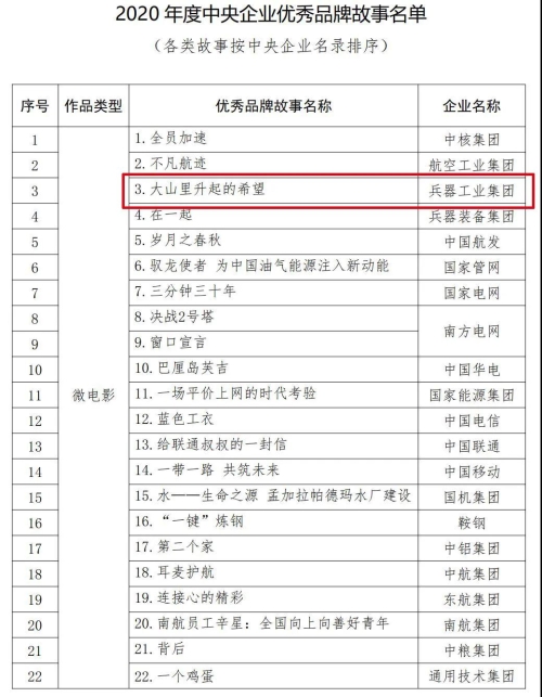 兵器工业集团品牌建设案例入选2020年度100个国有企业品牌建设典型案例和100个优秀品牌故事 | ||