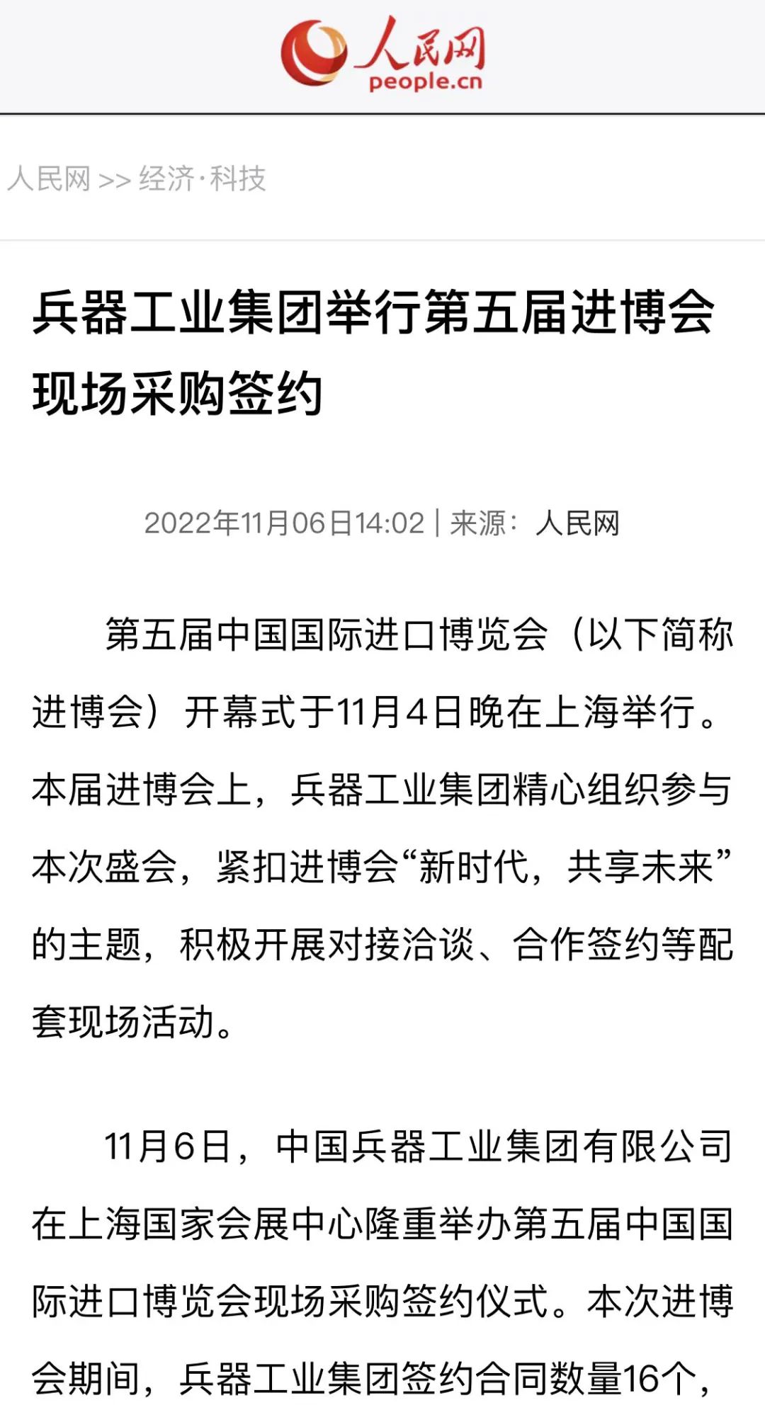 兵器工业集团第五届进博会成果受到广泛关注 | ||