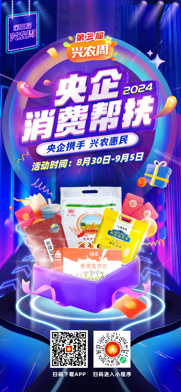 百家央企聚合力 消费帮扶促振兴 第三届“央企消费帮扶兴农周” 预售已启动 8月30日 兴农周活动将正式开启 “央企消费帮扶兴农周”由国务院国资委社会责任局指导,央企消费帮扶电商平台(国网数字科技控股有限公司)主办,国务院国资委机关服务管理局、国务院国资委香蕉影视高清、国网北京市电力公司、各中央企业电商平台联合协办。 活动以“央企携手,兴农惠民”为主题,组织动员中央企业所属各单位各部门(特别是工会,食堂),广大干部职工 香蕉影视在线,上下游供应商和业务合作伙伴采购帮扶县的优质农产品,促进脱贫地区产业发展和脱贫群众稳定增收,巩固拓展脱贫攻坚成果。 预售活动火热开启 为方便大家提前选购 此次预售期升级为10天 (8月20日-8月29日) 诚邀下单 兵器工业集团定点帮扶 黑龙江甘南县、云南红河县 农特产品! 8月30日-9月5日 请锁定“央企馆-兵器工业集团” 我们一起共谱乡村振兴新篇章! | ||