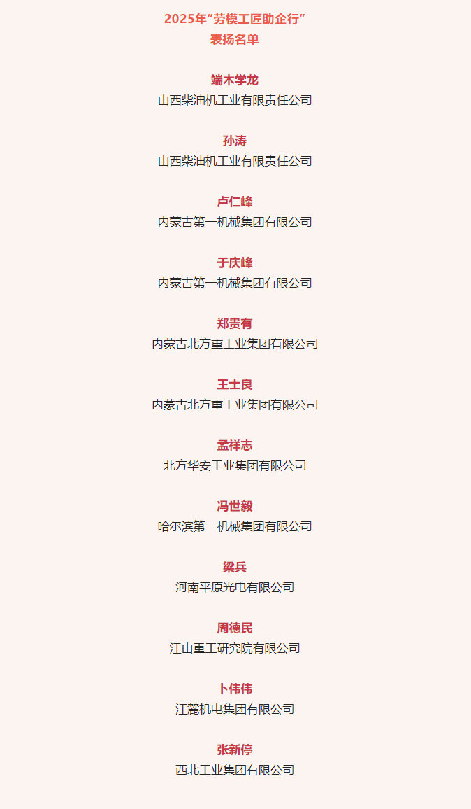 兵器工业集团12名劳模工匠入选“劳模工匠助企行”表扬名单 (香蕉在线) | ||