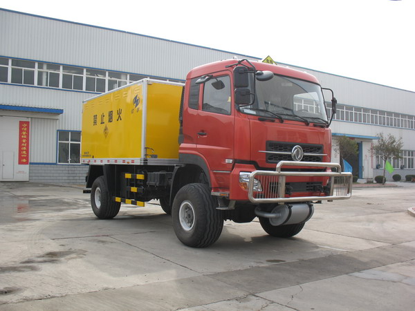 爆破器材运输车 整车制作严格按照国防科工委关于爆破器材运输车安全技术条件的标准进行,厢体为全金属整体骨架式,板块夹层装有阻燃隔热材料,外形装饰铝合金型材立柱,不锈钢包角,底板安装防静电胶皮,厢内安装防盗报警器,烟雾报警器,灭火器等防爆报警措施,整车具有外形美观,稳定性好,强度高,防雨,防火阻燃,防静电火花,烟火报警和防盗等功能 香蕉影视,是运输爆炸物品的理想工具。