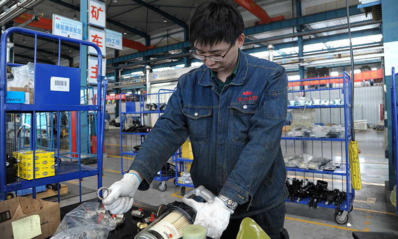 图为北重集团北方股份一线员工赶制生产进度。