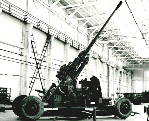 1958年,第一门59式100毫米高射炮的试制工作正式开始,同年10月,草原上第一炉钢水出炉,11月,第一批铸钢件毛坯产品浇筑成功,为第一门100毫米高射炮试制成功打下坚实基础。12月5日,承载着捍卫共和国国防安全的神圣使命,寄托着一代兵工人火炮梦的“新中国第一门大口径高射炮”——100毫米高射炮经检验试射完全符合设计要求,比原计划提前四个月试射成功,开始成批整装生产,成为构筑我国防空武器系统的重要王牌。