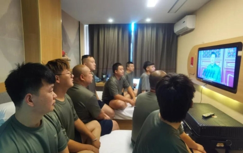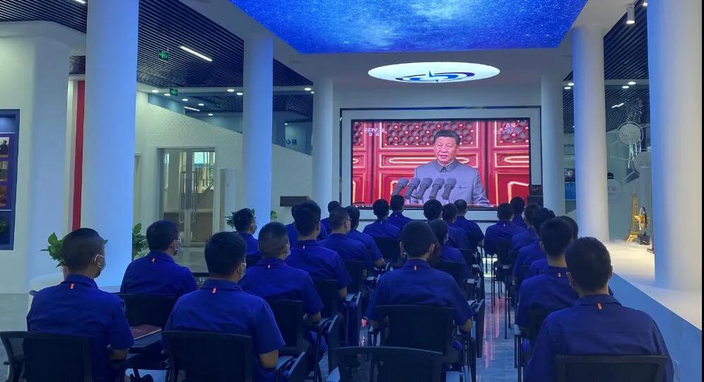集团公司总经理,党组副书记刘大山 香蕉影视高清,党组副书记周舰,党组成员,总会计师张华,纪检监察组组长,党组成员陈学钏,党组成员,副总经理邹文超,党组成员,副总经理植玉林带领总部全体职工观看庆祝大会,各单位组织机关干部,科研人员,车间工人等通过集中收看,电视,电脑,手机网络等方式观看庆祝大会。