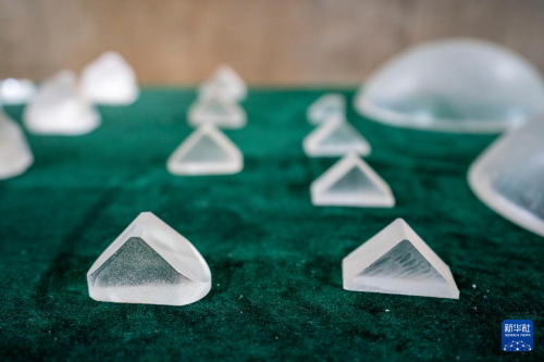 这是5月16日拍摄的中国光学历史博物馆内展出的玻璃元件。