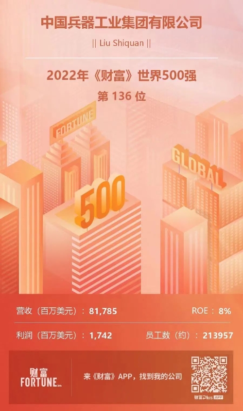 8月3日,《财富》世界500强排行榜正式发布,中国兵器工业集团有限公司以817