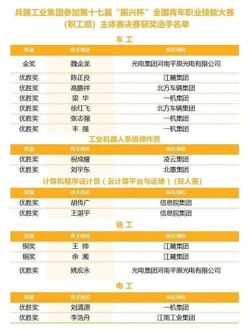 喜报丨兵器工业集团青年职工在第十七届“振兴杯”全国青年职业技能大赛(职工组)决赛中勇夺金奖 (免费电影) | ||