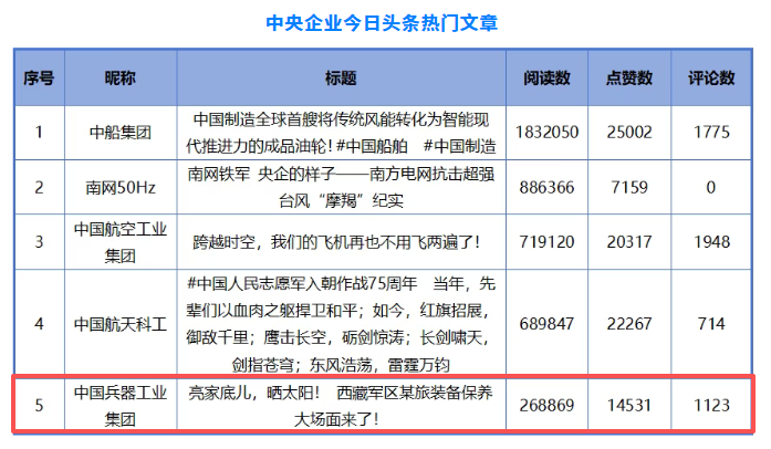 兵器工业集团2篇文章入选中央企业新媒体“热门文章” | ||